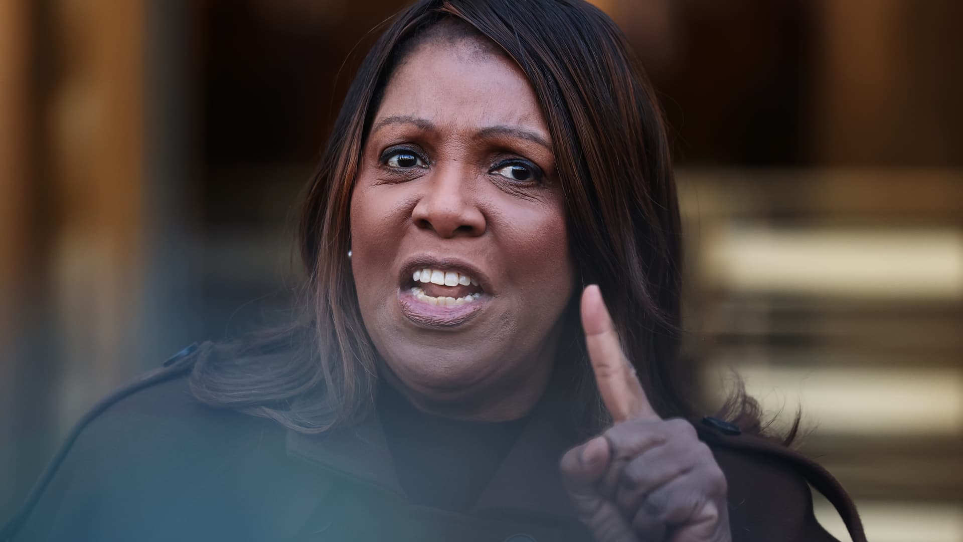 The New York Attorney General, Letitia James, speaks during a press conference on February 14, 2025 in New York City.