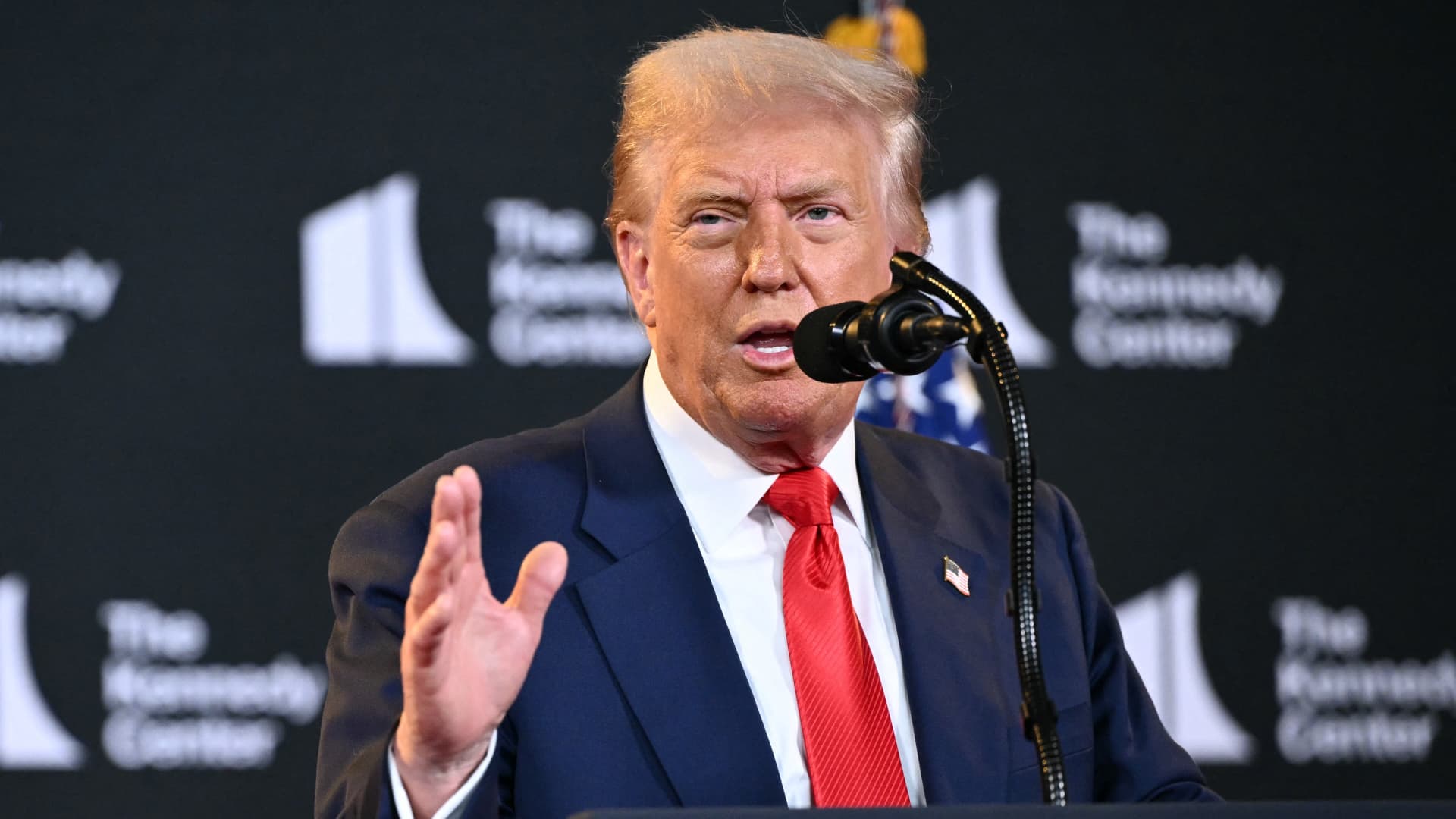 The president of the United States, Donald Trump, speaks during the presentation of the nominees of honors of the Kennedy center on August 13, 2025 at the Kennedy center in Washington, DC.